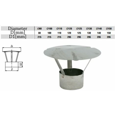 Regenhaube Regenhut Rosette Edelstahl 0,6 mm einwandig Schornstein Edelstahlkamin FU28-80