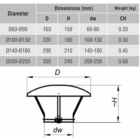 Edelstahl-Kaminabzugshaube Rohr Regenschutz Schutzkappe Ende 60-80mm