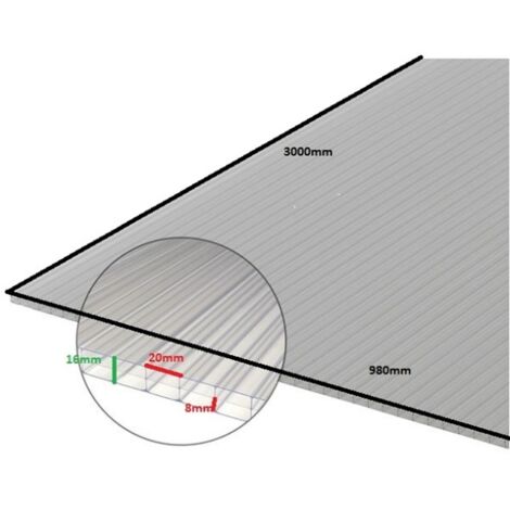 Alveolar-Polycarbonat-Folie, 16 mm - Farbe - Opal, Dicke - 16 mm, Breite - 98 cm, Länge - 2 m