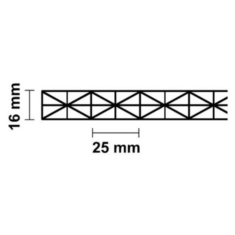 Stegplatte aus Polycarbonat 16mm stark, klar, Steg 3-Fach mit X Struktur, 16/25/3X