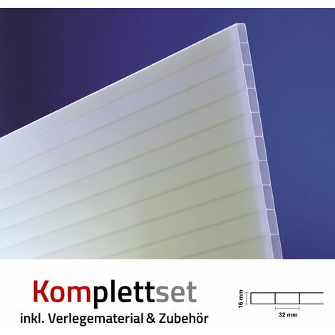 Stegplatte aus Polycarbonat, 16mm stark, klar, Steg 3 Fach, 16/20/3